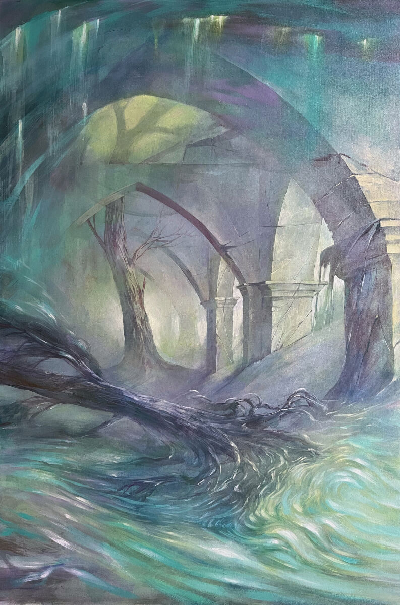 В работах обращается к иллюзорности и иносказательности снов, использует образы архитектурных