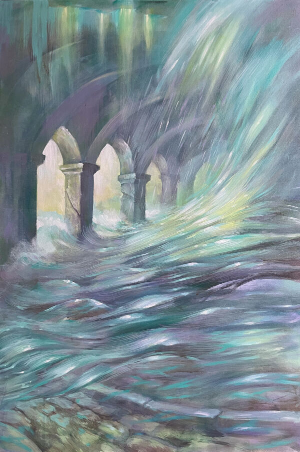 акриловыми красками на холсте.